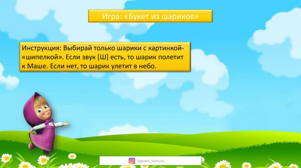 Инструкция: Выбирай только шарики с картинкой«шипелкой». Если звук [Ш] есть, то шарик полетит