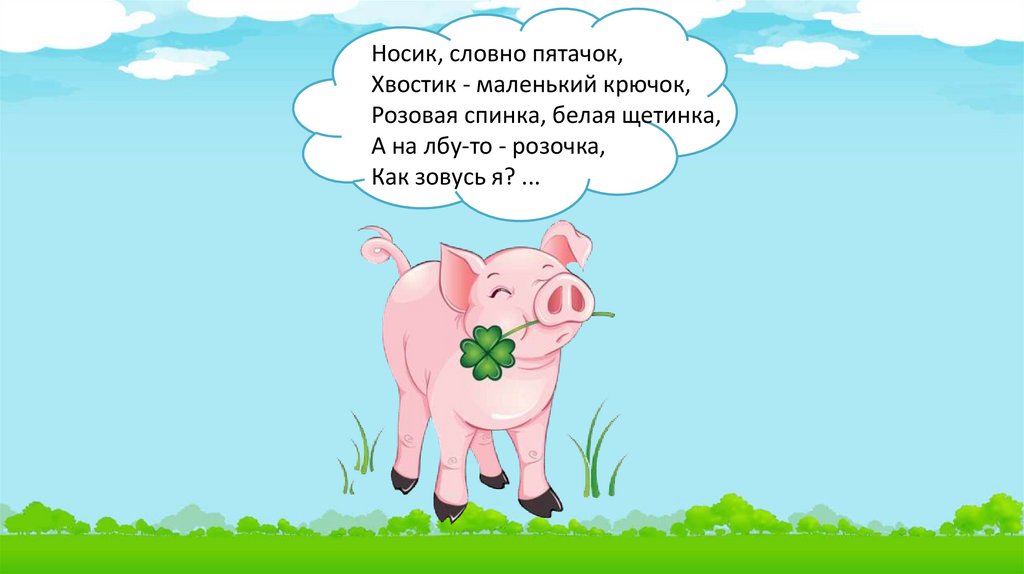 Носик, словно пятачок,Хвостик - маленький крючок,
