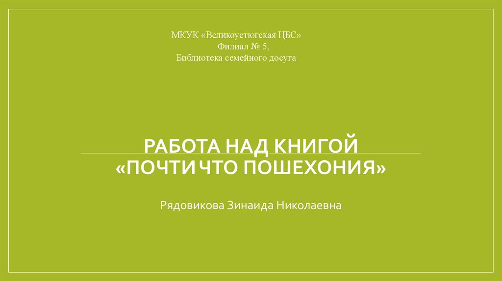 МКУК «Великоустюгская ЦБС»Филиал № 5,