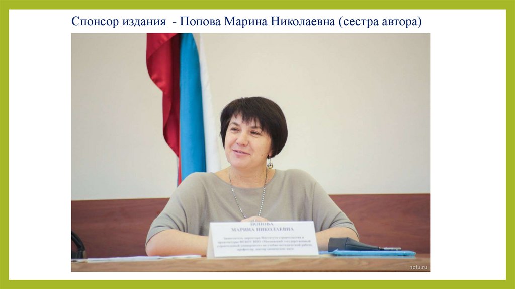 Спонсор издания - Попова Марина Николаевна (сестра автора)5.