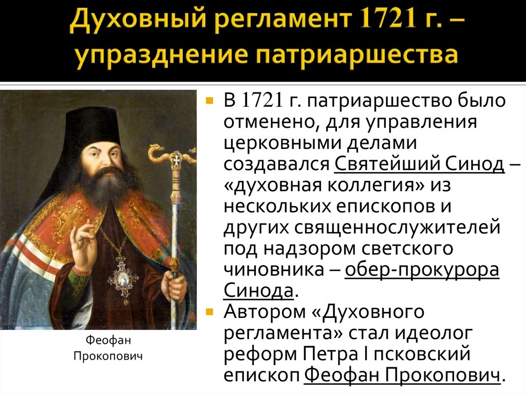 В 1721 г. патриаршество было
