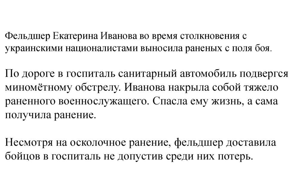 миномётному обстрелу. Иванова накрыла собой тяжело