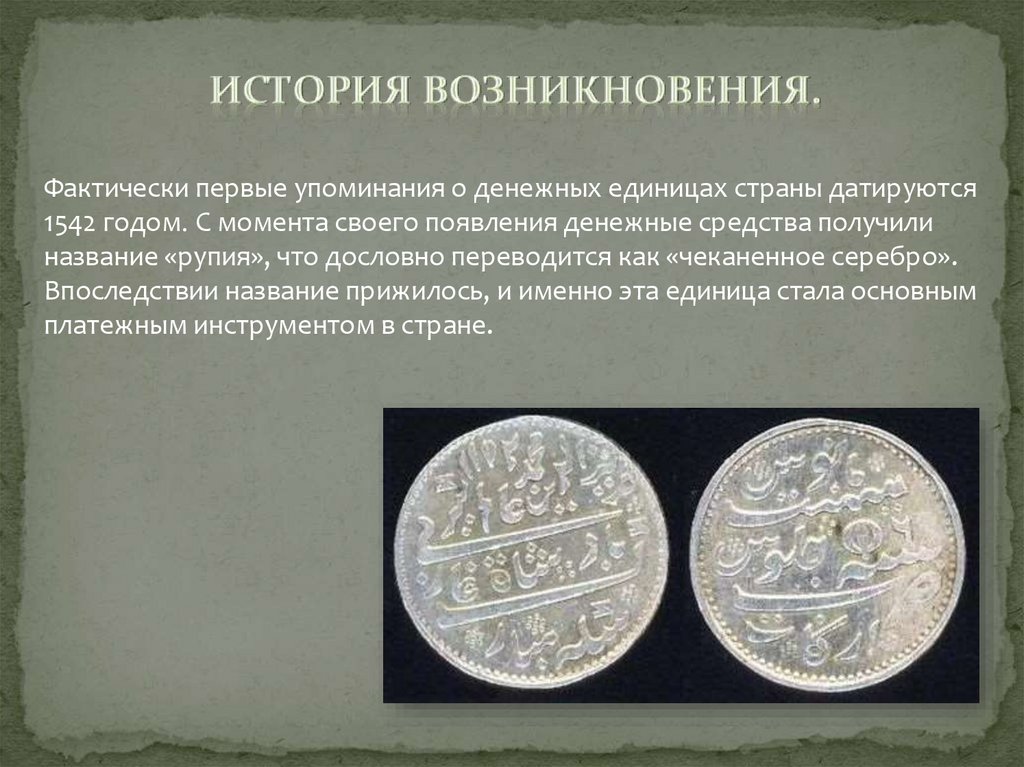 название «рупия», что дословно переводится как «чеканенное серебро».