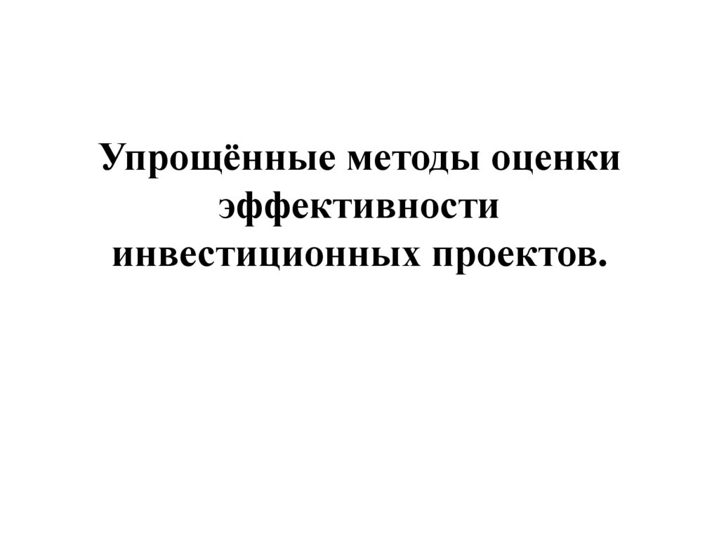Упрощённые методы оценки эффективности инвестиционных проектов