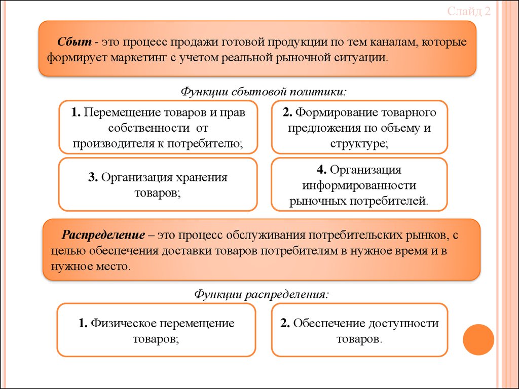 Функции сбытовой политики: