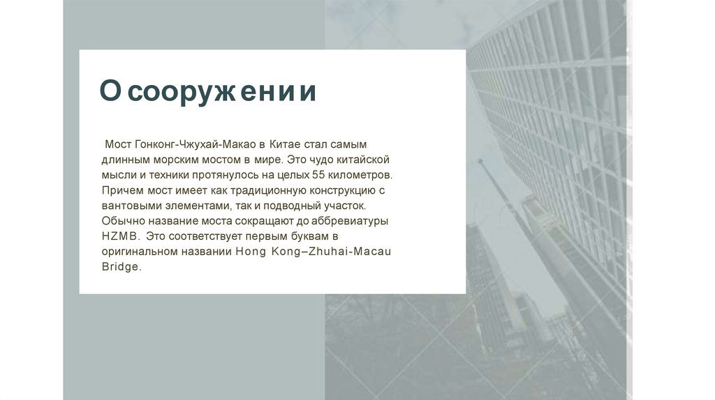 Презентация на тему :Мост Гонконг - Чж ухай Макао