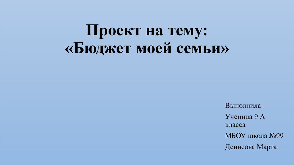 Проект на тему:«Бюджет моей семьи»