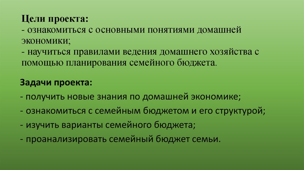 - получить новые знания по домашней экономике;