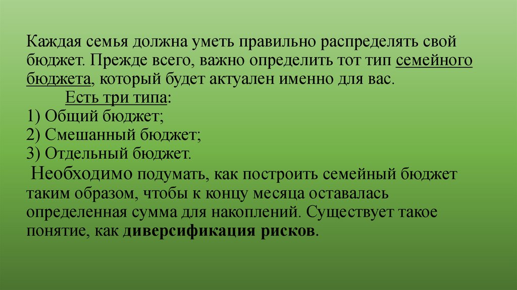 Каждая семья должна уметь правильно распределять свойбюджет. Прежде всего, важно определить тот тип семейного