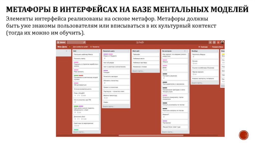 Элементы интерфейса реализованы на основе метафор. Метафоры должныбыть уже знакомы пользователям или вписываться в их культурный контекст