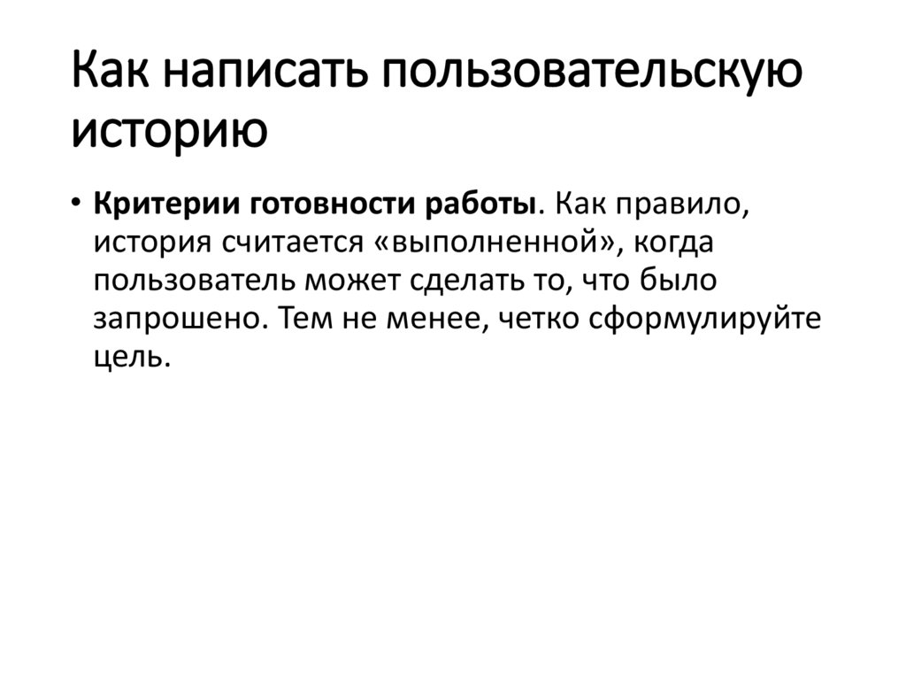 • Критерии готовности работы. Как правило,