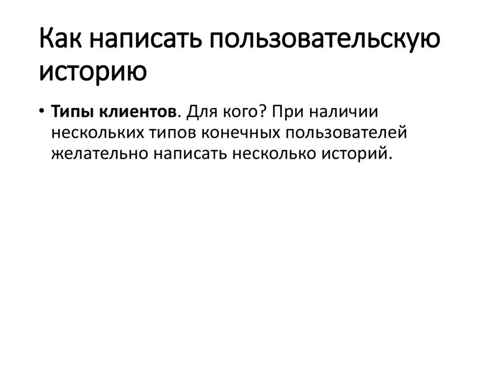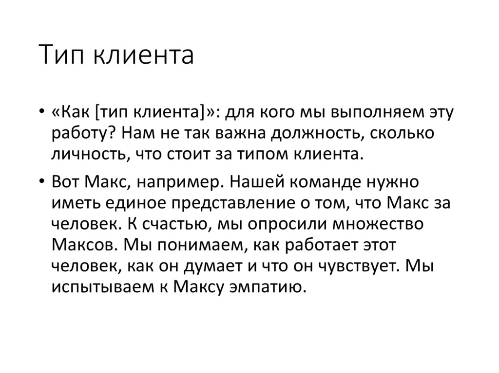 Тип клиента• «Как [тип клиента]»: для кого мы выполняем эту
