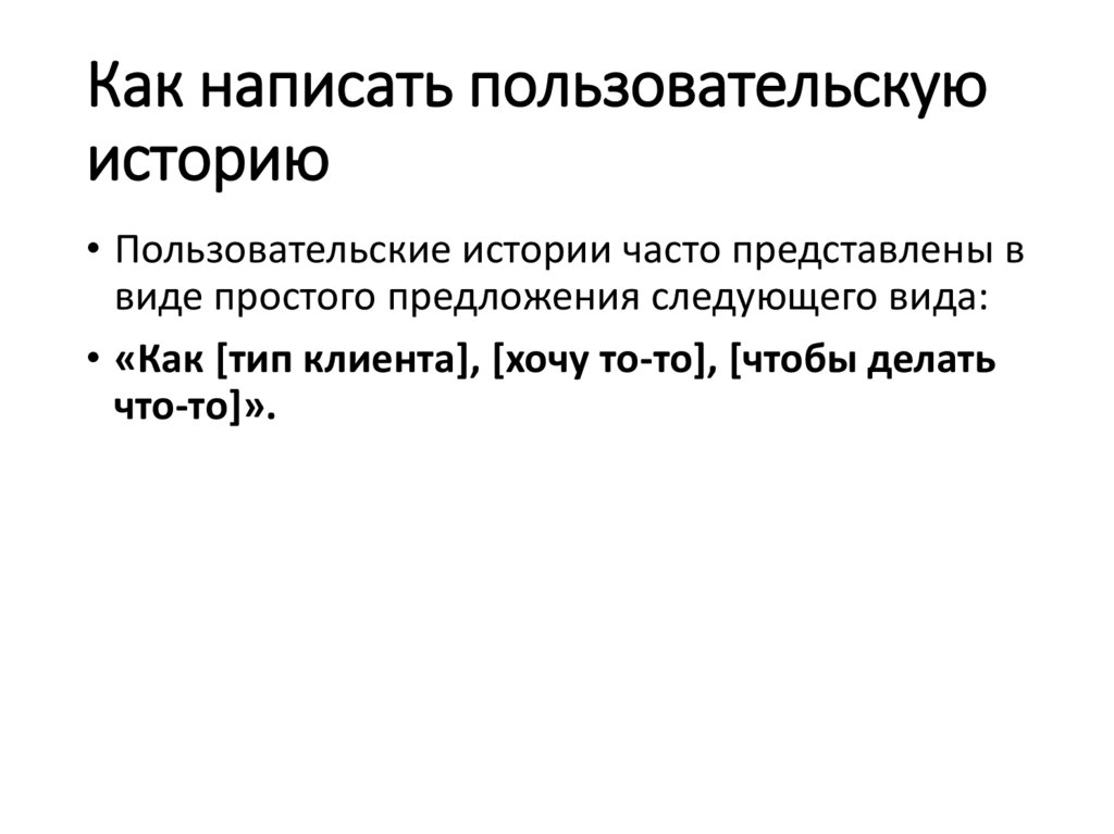 • «Как [тип клиента], [хочу то-то], [чтобы делать