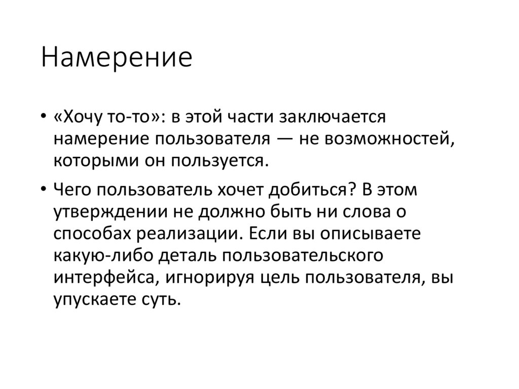 намерение пользователя — не возможностей,