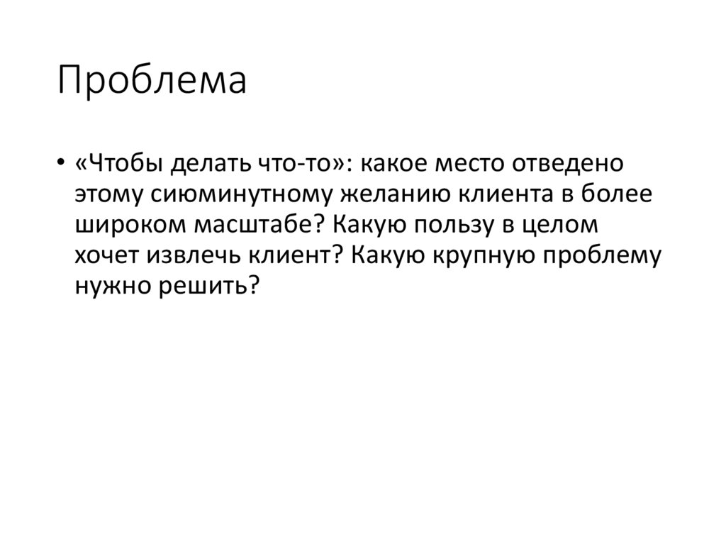 хочет извлечь клиент? Какую крупную проблему