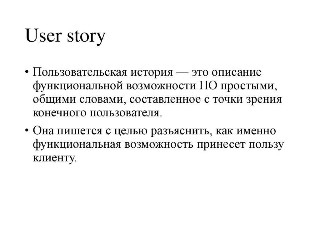 User story• Пользовательская история — это описание