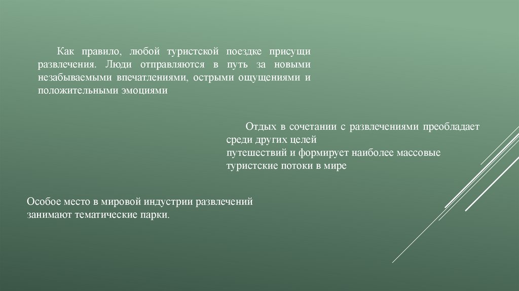 Как правило, любой туристской поездке присущиразвлечения. Люди отправляются в путь за новыми
