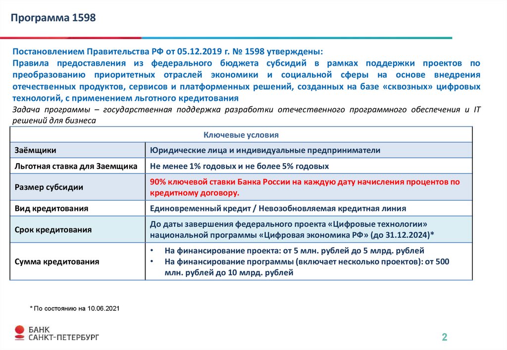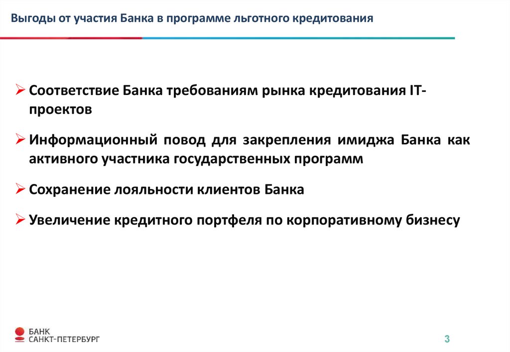 Выгоды от участия Банка в программе льготного кредитованияСоответствие Банка требованиям рынка кредитования ITпроектов
