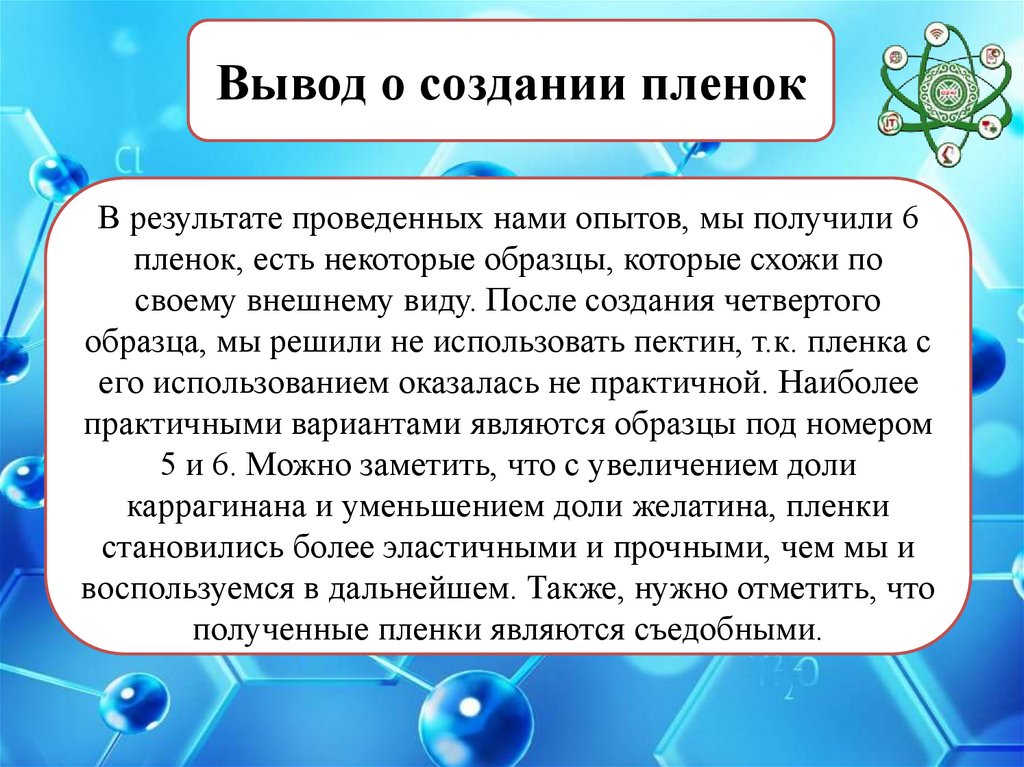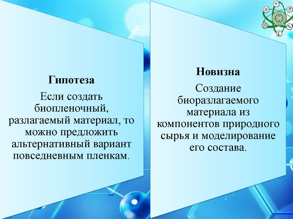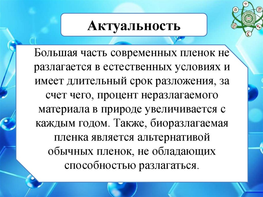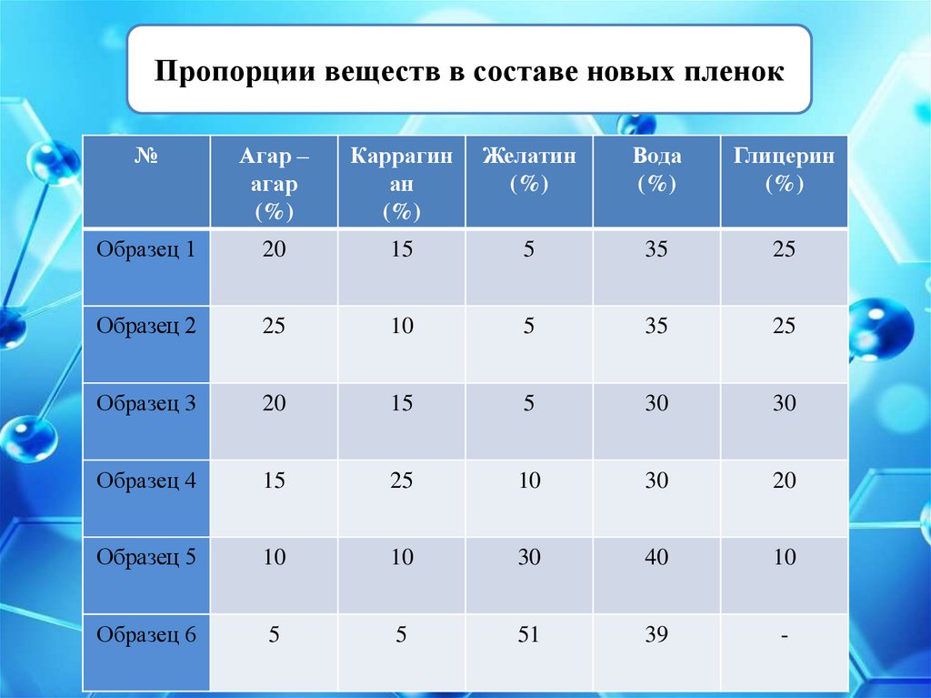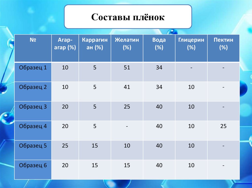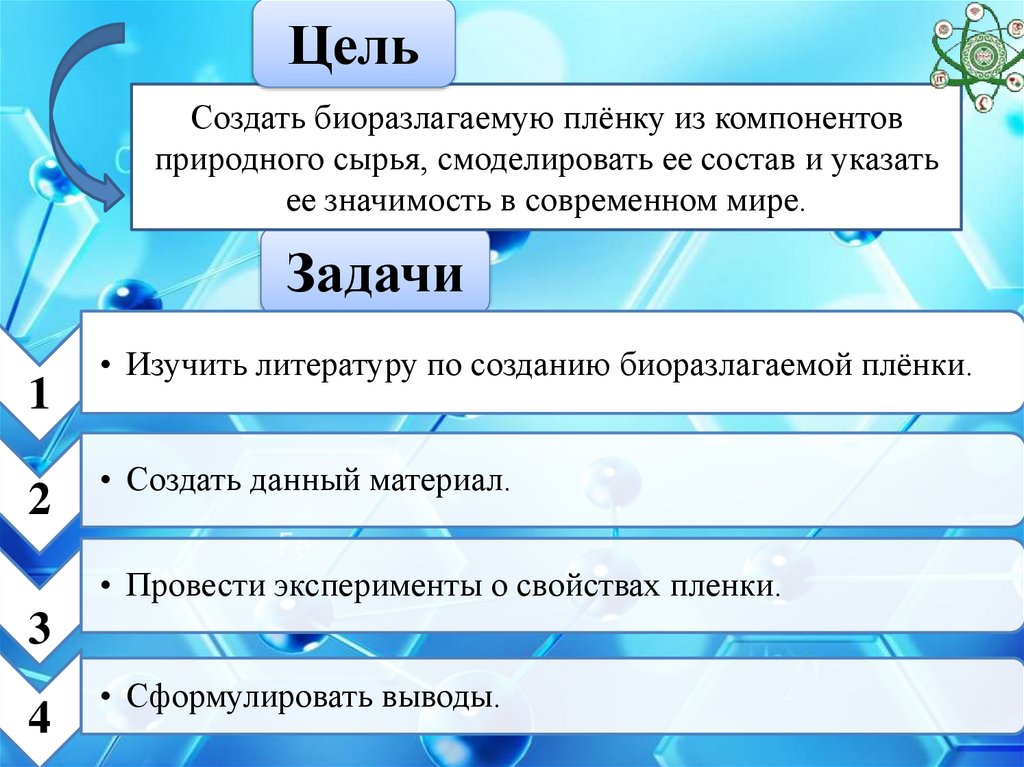 ЦельСоздать биоразлагаемую плёнку из компонентов