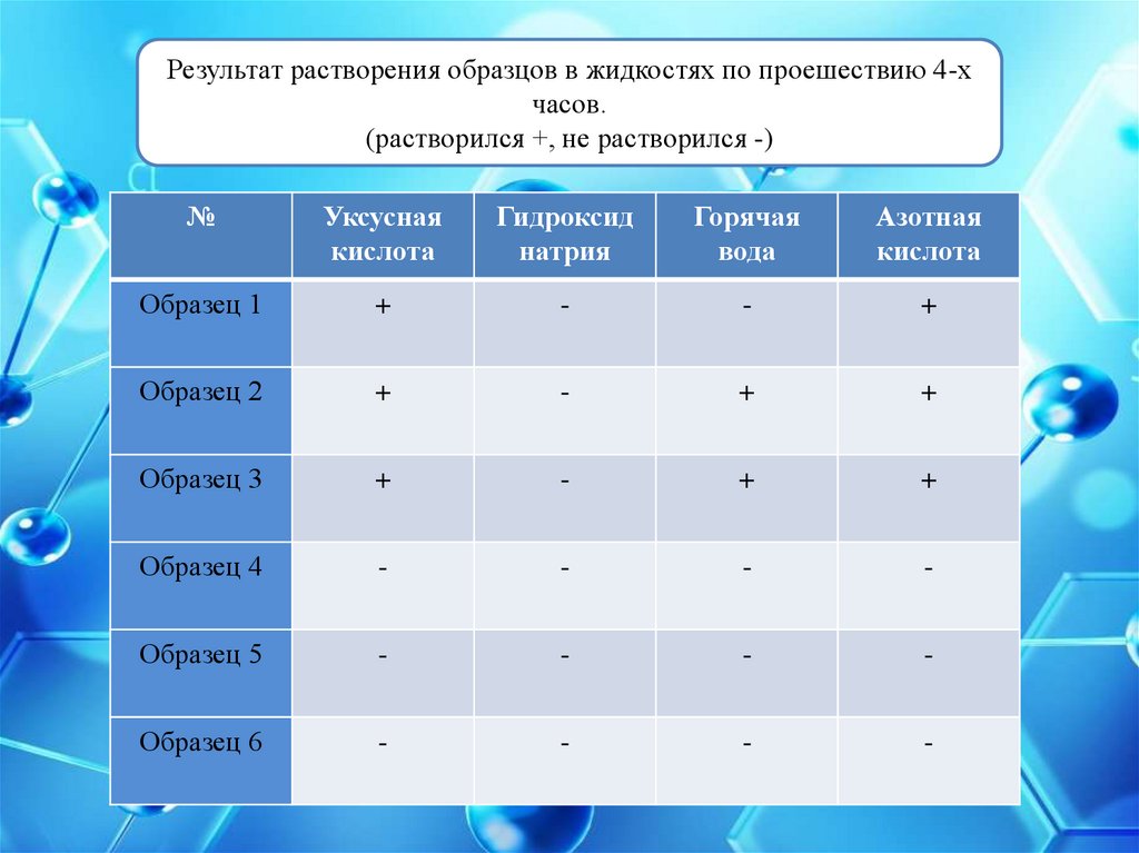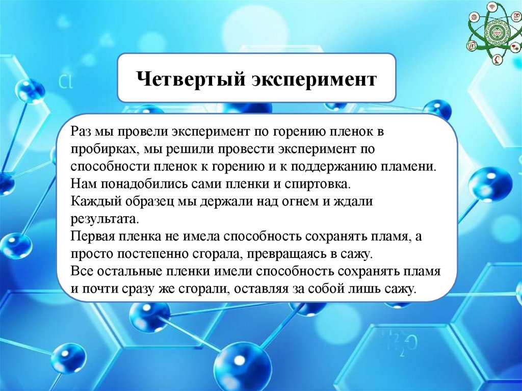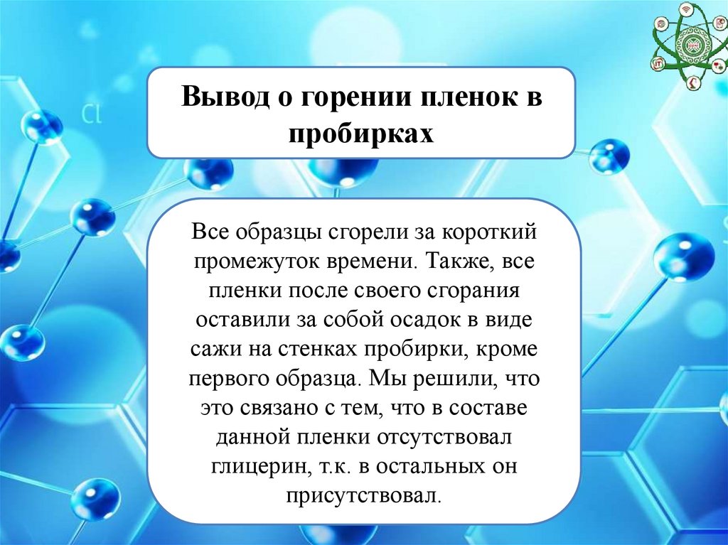 все пленки, кроме 1-го образца, при сгорании превращались в сажу
