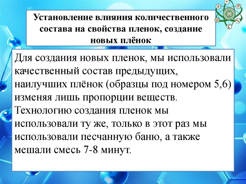 Далее, мы создали еще шесть новых образцов с составом 5го и 6-го образца, но с разными пропорциями реагентов. В