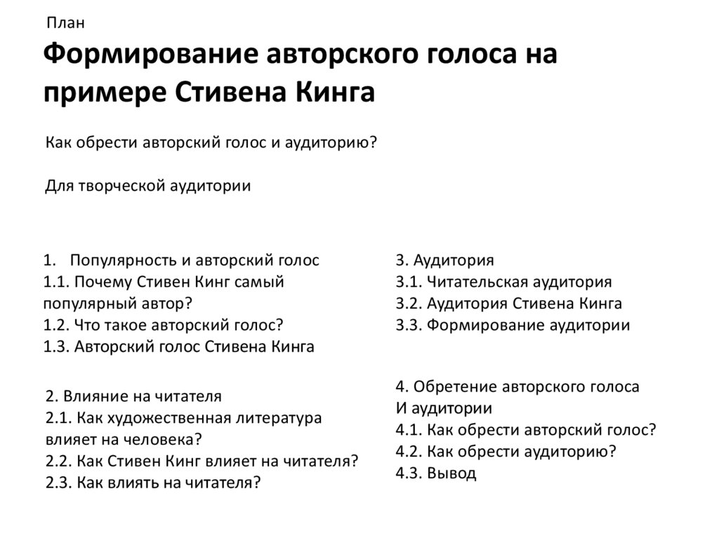 ПланФормирование авторского голоса на