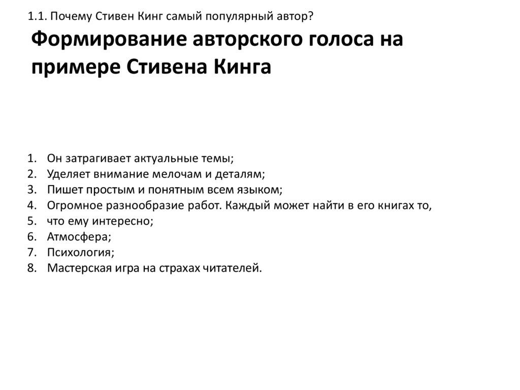 1.1. Почему Стивен Кинг самый популярный автор?Формирование авторского голоса на