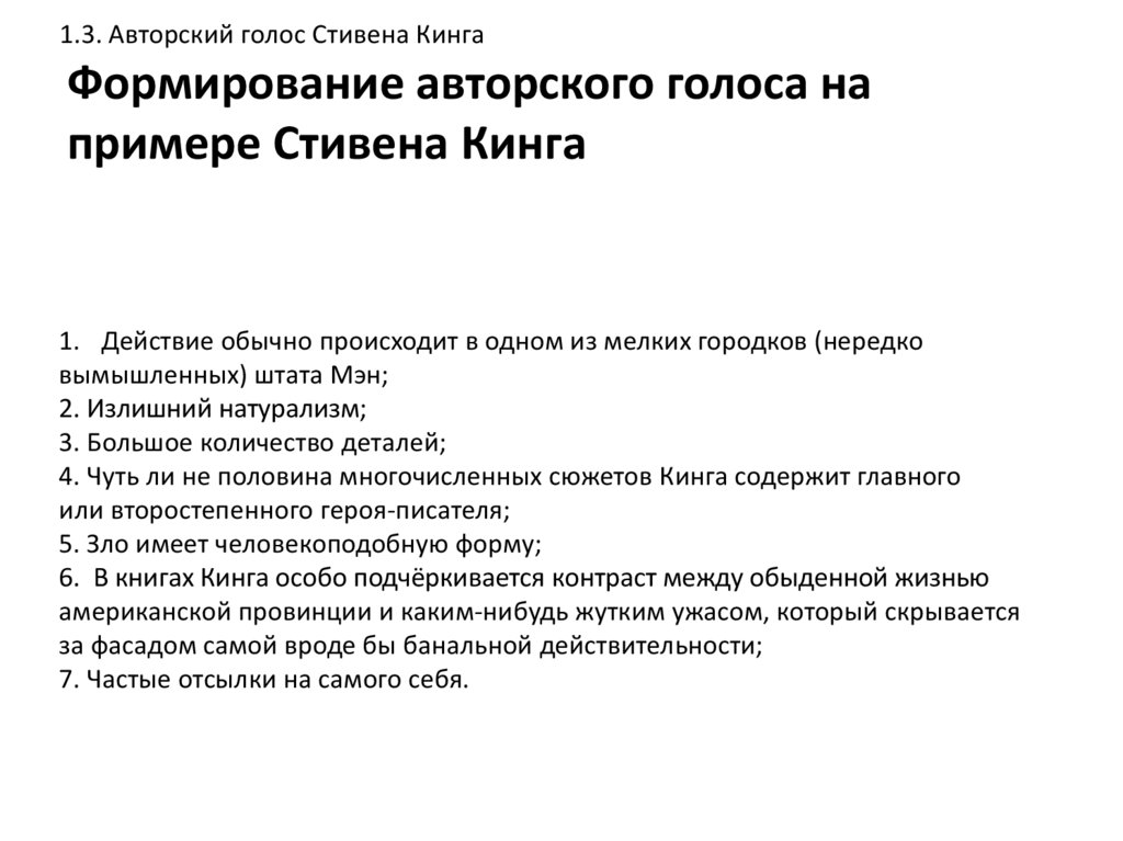 1.3. Авторский голос Стивена КингаФормирование авторского голоса на