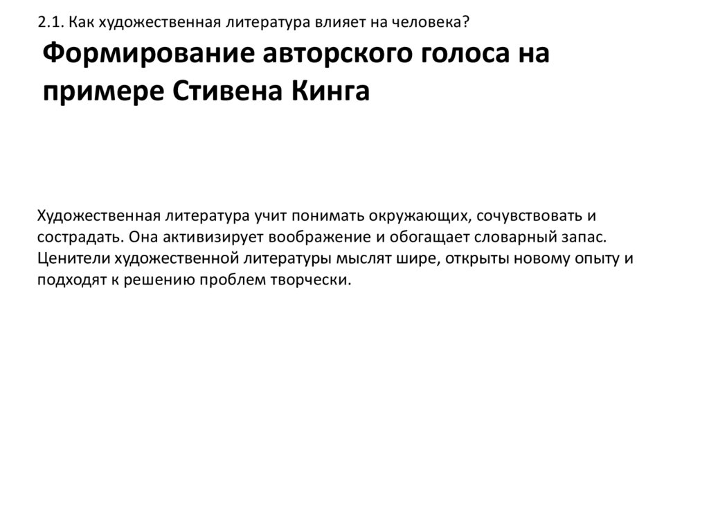 2.1. Как художественная литература влияет на человека?Формирование авторского голоса на