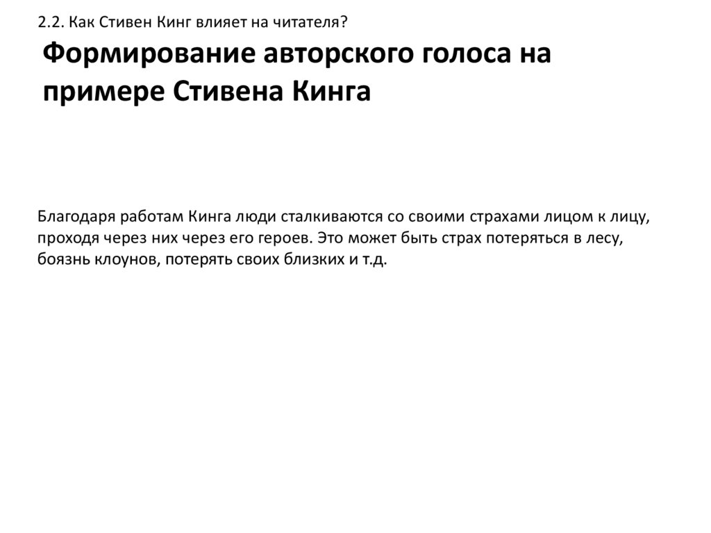 2.2. Как Стивен Кинг влияет на читателя?Формирование авторского голоса на
