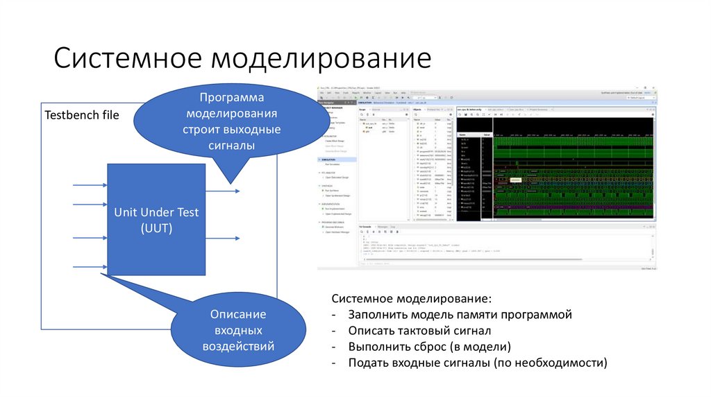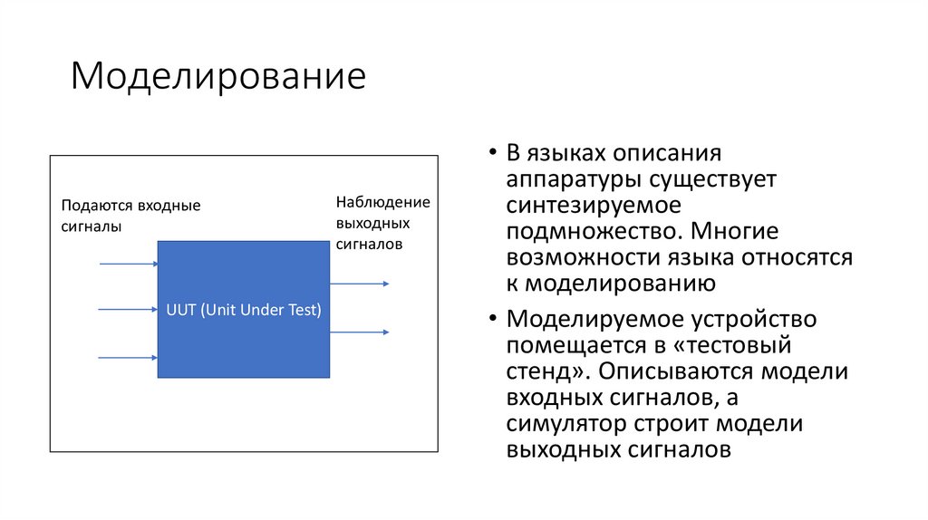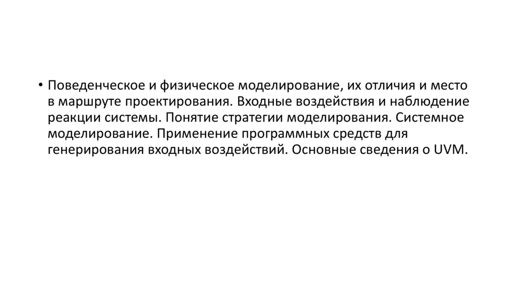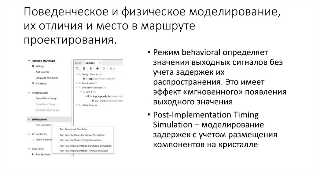 • Поведенческое и физическое моделирование, их отличия и местов маршруте проектирования. Входные воздействия и наблюдение
