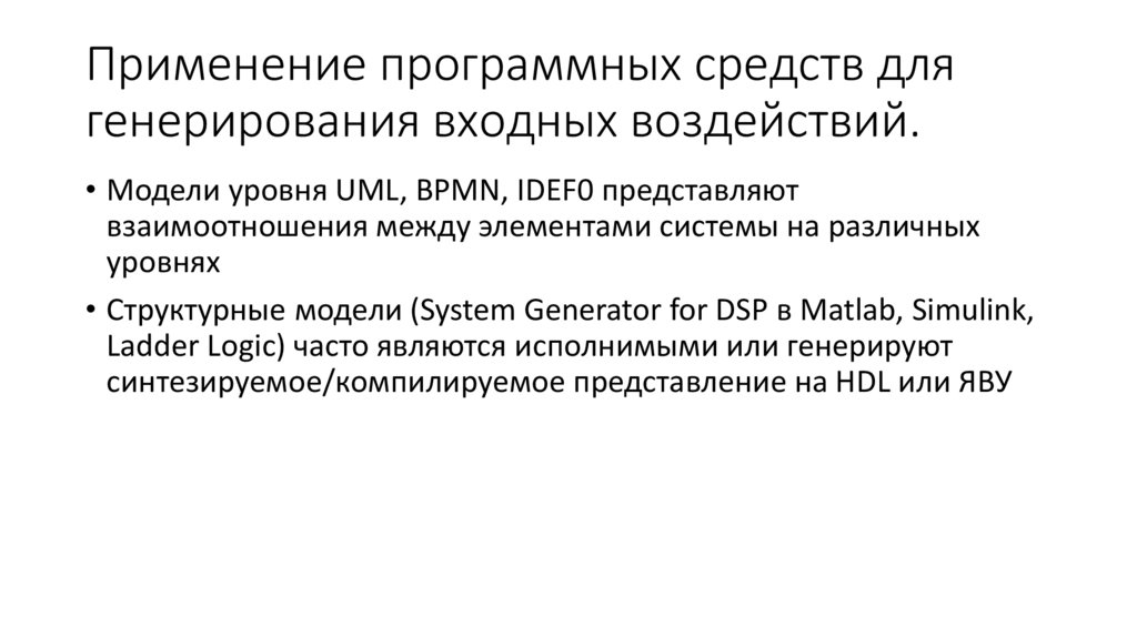 • Структурные модели (System Generator for DSP в Matlab, Simulink,