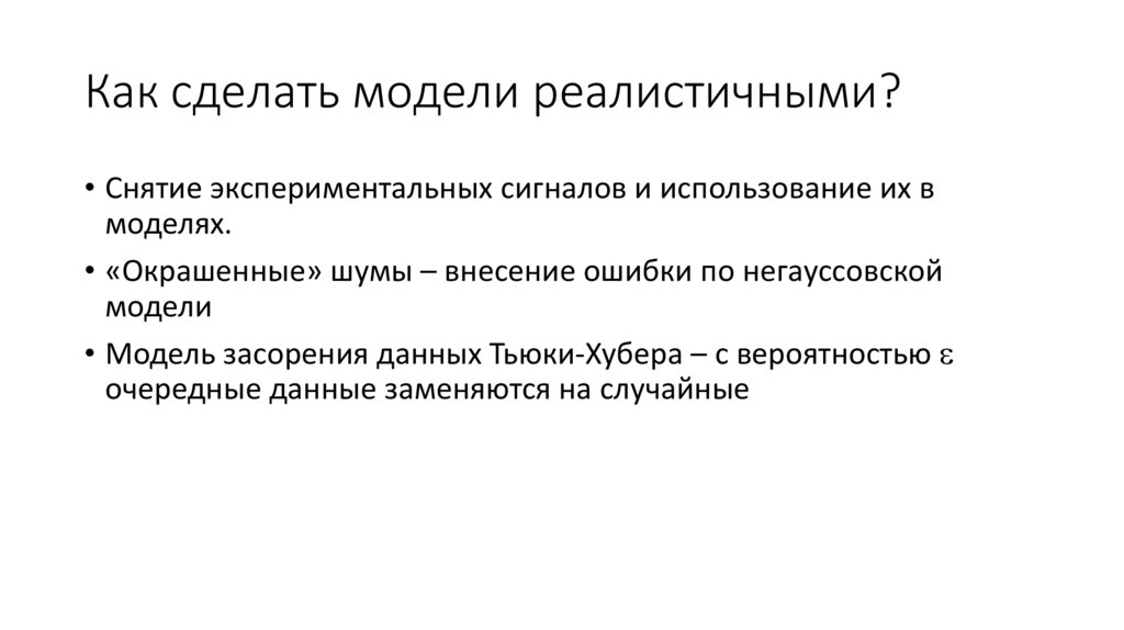 Как сделать модели реалистичными?• Снятие экспериментальных сигналов и использование их в