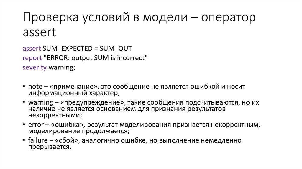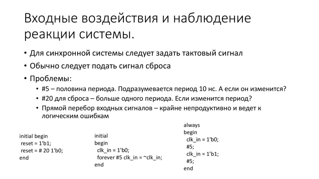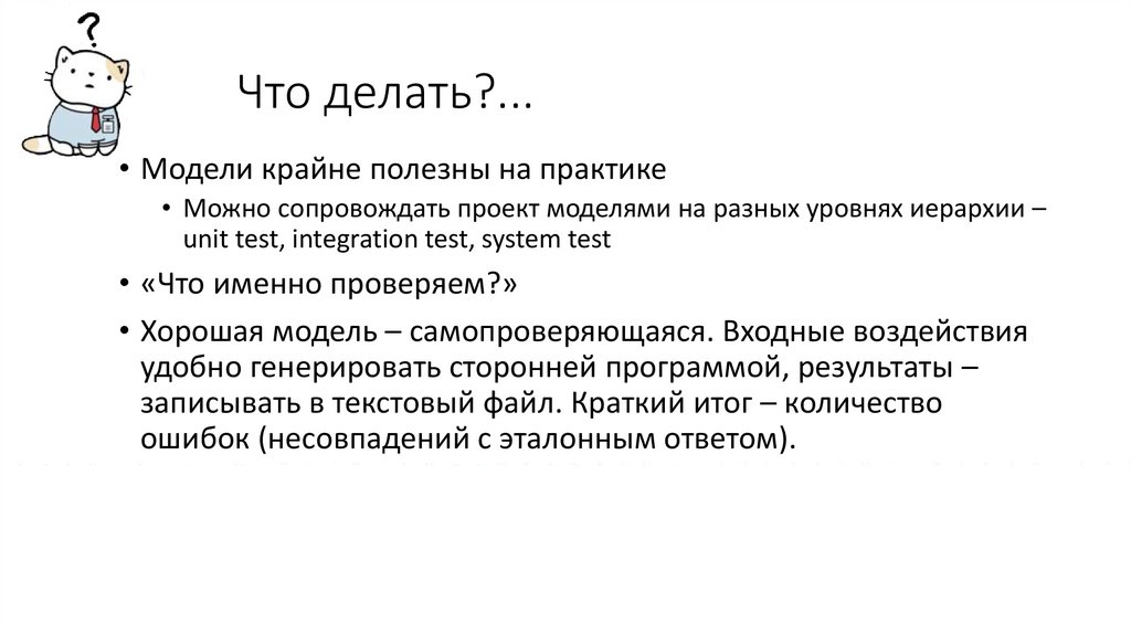 • Хорошая модель – самопроверяющаяся. Входные воздействия