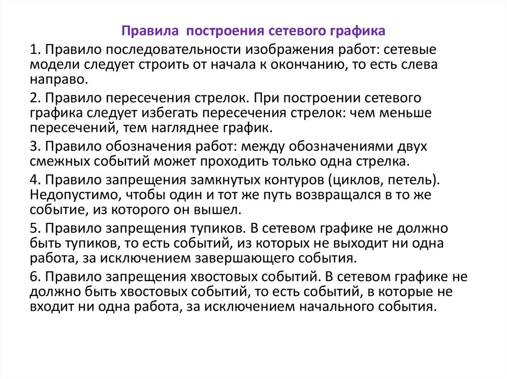 5. Правило запрещения тупиков. В сетевом графике не должно
