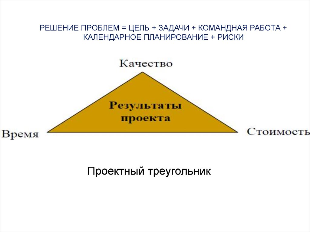 РЕШЕНИЕ ПРОБЛЕМ = ЦЕЛЬ + ЗАДАЧИ + КОМАНДНАЯ РАБОТА +КАЛЕНДАРНОЕ ПЛАНИРОВАНИЕ + РИСКИ