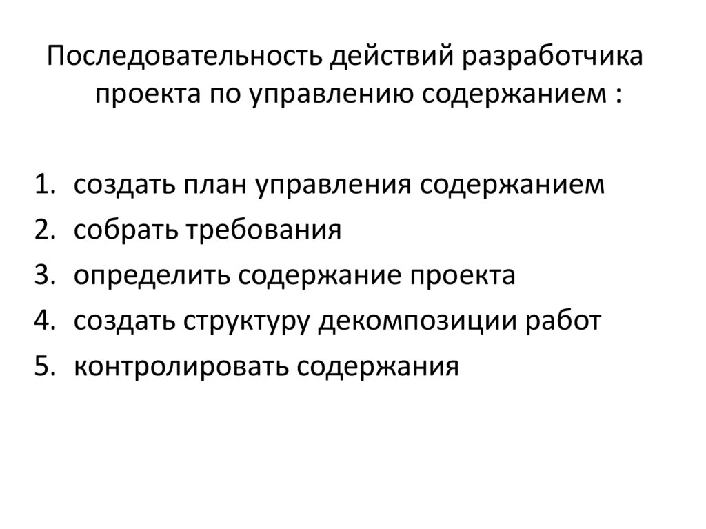 Последовательность действий разработчикапроекта по управлению содержанием :