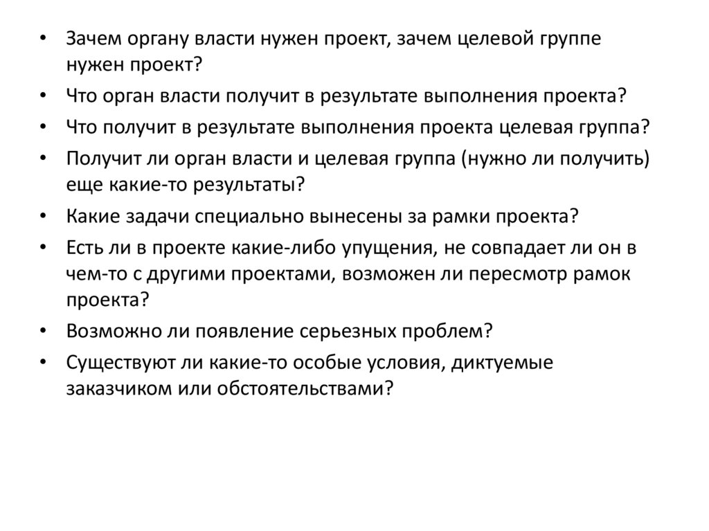 • Зачем органу власти нужен проект, зачем целевой группенужен проект?