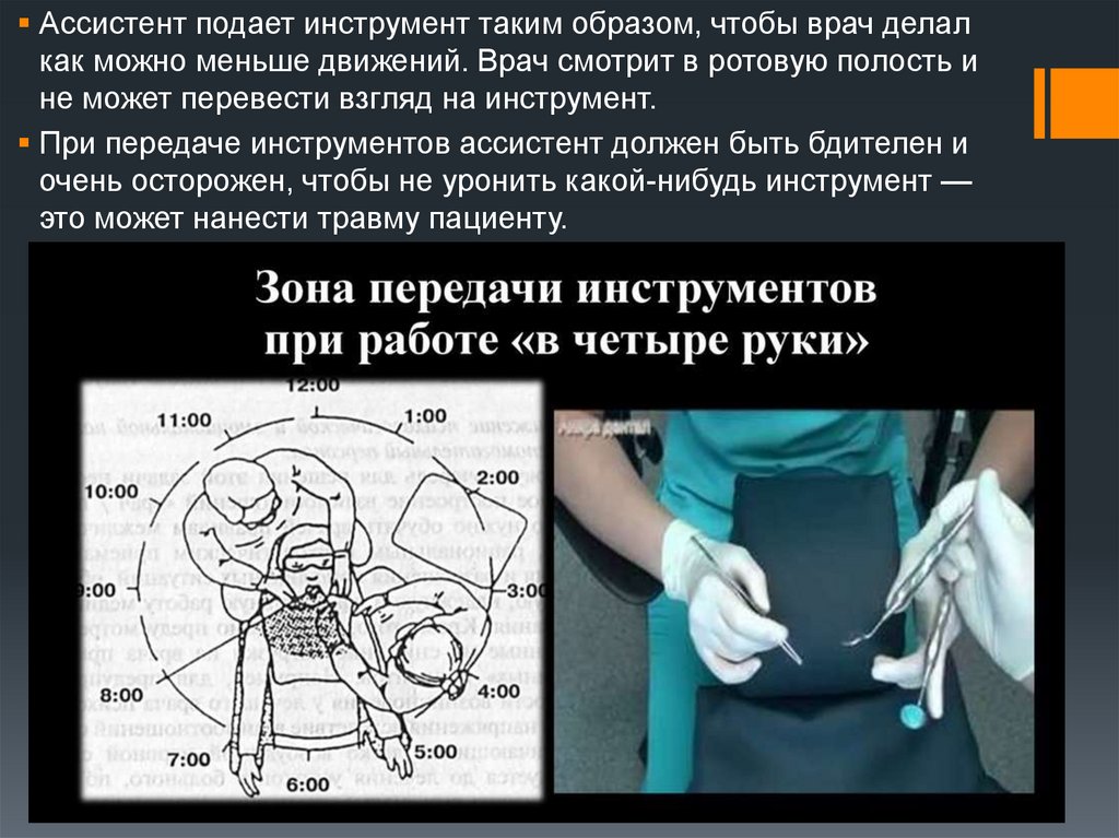 3. Избегать сталкивания рук ассистента с руками врача. Помните, что