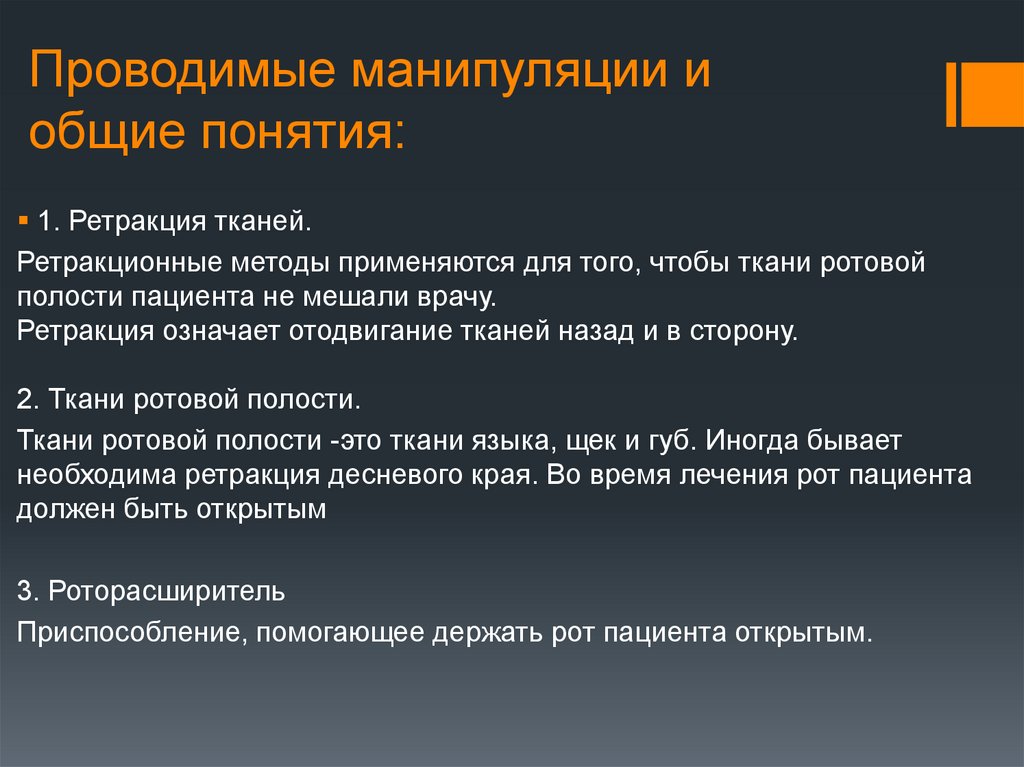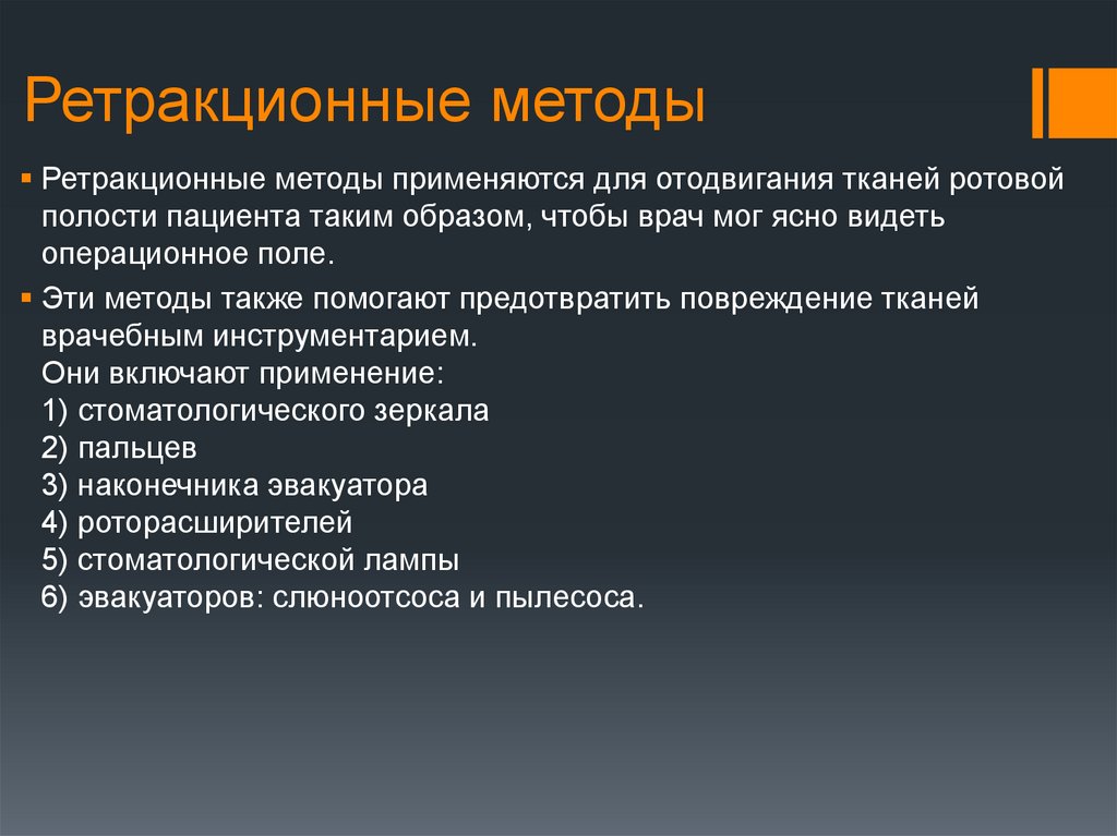 Ретракционные методыРетракционные методы применяются для отодвигания тканей ротовой