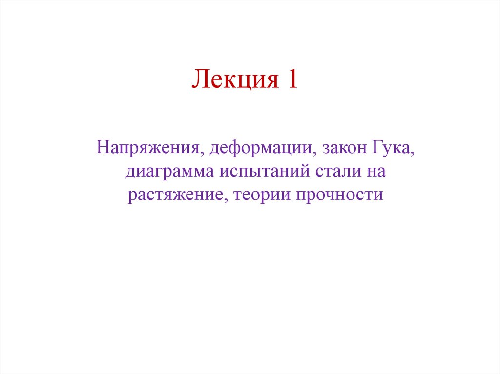 Напряжения, деформации, закон Гука, диаграмма испытаний стали на растяжение, теории прочности