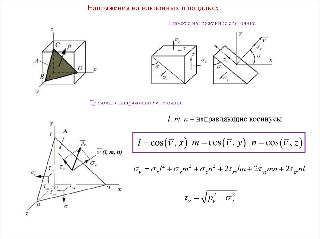 Напряжения на наклонных площадкахПлоское напряженное состояние