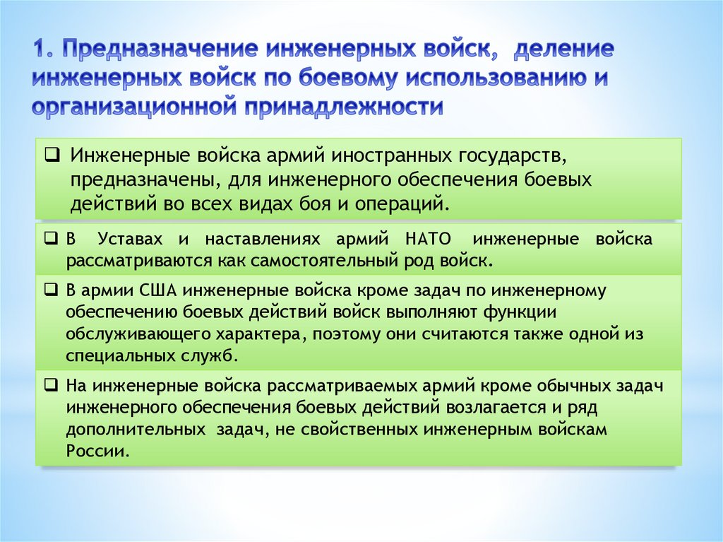 Инженерные войска армий иностранных государств,предназначены, для инженерного обеспечения боевых