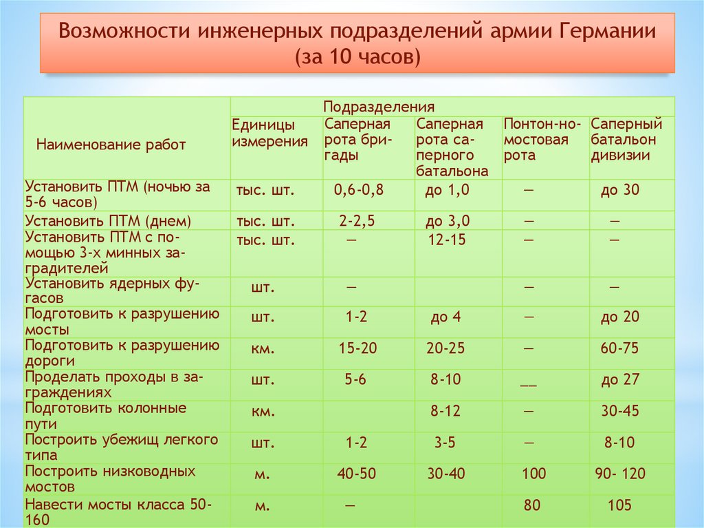 Возможности инженерных подразделений армии Германии(за 10 часов)