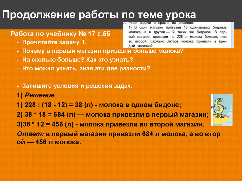 Продолжение работы по теме урокаРабота по учебнику № 17 с.55