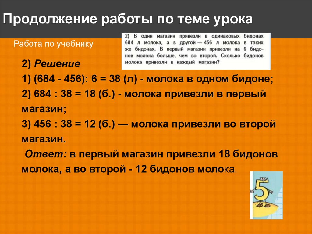 3) 456 : 38 = 12 (б.) — молока привезли во второй