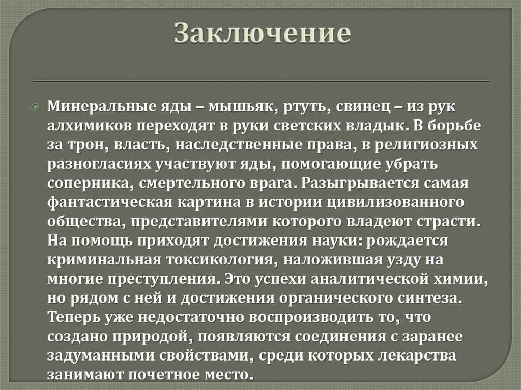 Минеральные яды – мышьяк, ртуть, свинец – из рукалхимиков переходят в руки светских владык. В борьбе