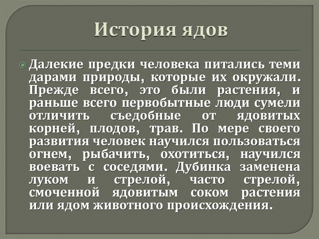 Человечество сталкивалась с ядами ещё вдалёкой древности. Природа наделила этим