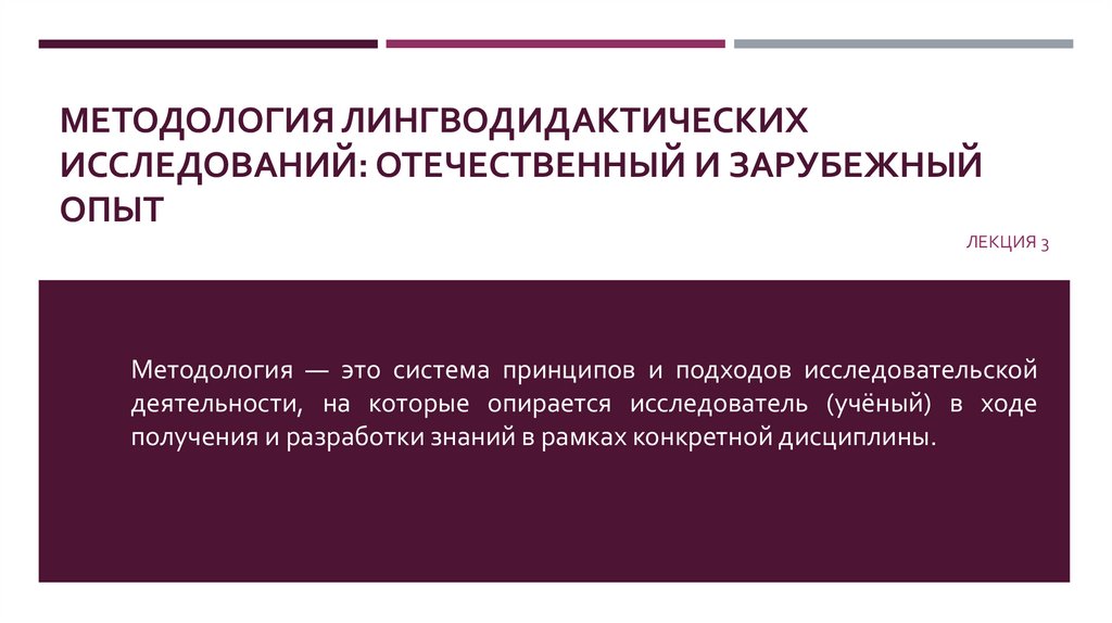 Методология лингводидактических исследований: отечественный и зарубежный опыт. Лекция 3
