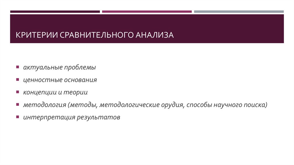 КРИТЕРИИ СРАВНИТЕЛЬНОГО АНАЛИЗАактуальные проблемы